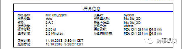 主要包括樣品名稱(chēng)、采集者、樣品類(lèi)型、樣品組名稱(chēng)、瓶號(hào)、采集方法組、進(jìn)樣次數(shù)、處理方法、進(jìn)樣體積、通道名稱(chēng)、運(yùn)行時(shí)間、處理通道說(shuō)明、采集時(shí)間、處理時(shí)間等,有的公司要求有系統(tǒng)名稱(chēng)和儀器編號(hào)。