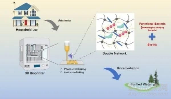 中國科學(xué)院城市環(huán)境研究所環(huán)境生物技術(shù)研究團(tuán)隊(duì)與福建物質(zhì)結(jié)構(gòu)研究所研究員吳立新團(tuán)隊(duì)合作,開發(fā)出新型含有異養(yǎng)硝化細(xì)菌的新型雙網(wǎng)絡(luò)交聯(lián)PEGDA-藻酸鹽-PVA-納米粘土(PAPN)的高分子微生物3D打印墨水??蒲腥藛T利用擠出式3D打印技術(shù),打印了具有去除污水中氨氮的PAPN細(xì)菌活性功能體。該3D打印生物活性功能體可在12 h內(nèi)有效去除污水中96.2±1.3%氨氮,且在模擬常溫?zé)o培養(yǎng)基的運(yùn)輸模式下保存168 h后,仍保持去除氨氮的微生物活性,具有環(huán)境友好、可定制化制備、重復(fù)利用等優(yōu)勢。這將提升3D生物打印在水污染治理等方面的應(yīng)用潛力。