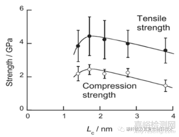 雖然碳纖維的拉伸強(qiáng)度和壓縮強(qiáng)度顯示出相似的變化趨勢,但人們認(rèn)為它們的破壞機(jī)制卻有所不同??蒲腥藛T提出碳纖維的拉伸強(qiáng)度主要取決于缺陷結(jié)構(gòu),而壓縮強(qiáng)度則由微觀結(jié)構(gòu)、結(jié)晶度和取向所決定。根據(jù)一些研究結(jié)果表明具有高拉伸模量的碳纖維往往壓縮強(qiáng)度較低。