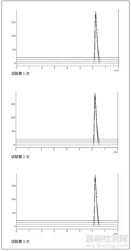 醋氯芬酸分散片顆粒檢查結(jié)果見表4,顆粒含量檢查見高效液相色譜圖1。