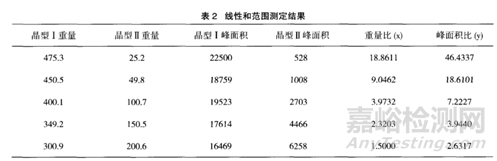 單峰法:即選取特征衍射峰,建立特征衍射峰峰強度與被測藥物中各晶型組分的對應關系。同一藥物在不同混晶的情況下,建立混合物中的各種晶型含量與特征峰衍射強度關系的標準曲線,可以實現(xiàn)對原料藥的晶型種類和比例的含量測定。該方法簡單,對樣品的信息要求較低,靈敏度也相對較高,是常用的一種定量分析方法。例如有文獻應用PXRD的單峰法測定地氯雷他定中晶型Ⅰ和晶型Ⅱ的比例,首先選擇不同晶型的特征衍射峰,晶型Ⅰ選擇2θ=29.4°為特征衍射峰,晶型Ⅱ選擇2θ=22.4°為特征峰,以5份晶型Ⅰ和晶型Ⅱ的不同比例混合對照品樣品的特征峰面積和重量比進行線性回歸,得到線性方程:y=2.3205x-1.5641(r=0.9986)。