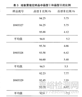 應用建立好的標曲對實際不同批次的樣品進行測定,計算晶型Ⅰ的含量,由結果可知樣品中晶型Ⅱ的比例較小,基本不超過10%[2]。