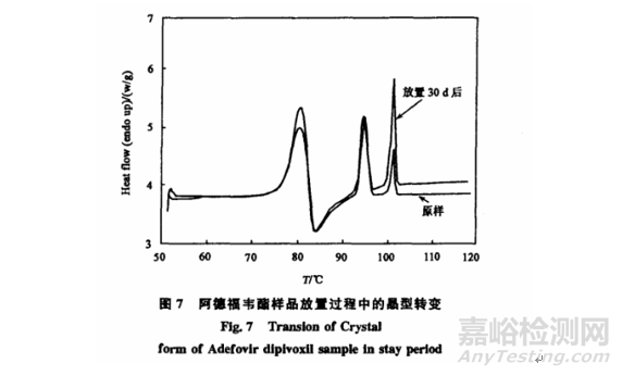 應用該DSC方法測定阿德福韋樣品在二氯甲烷溶劑中0~5℃重結晶獲得的樣品以及在室溫20~25℃放置30d后的樣品,通過計算可以知道樣品中A晶型的含量從11.2%提高到了25.6%,即在室溫放置過程中有部分非晶組分轉(zhuǎn)成了A晶型[5]。