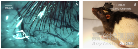 其中:縫線直徑4-6微米比頭發(fā)絲還細(xì),與芯片相連,用來采集傳輸神經(jīng)元信號,縫線與傳統(tǒng)材料不同,分布在96個線程的每個陣列中,可擁有3072個電極;手術(shù)機(jī)器人則每分鐘自動插入六根線(包含192個電極);N1芯片用來清理和放大大腦信號;這次采用的有線接口與外部連接,在小鼠身上進(jìn)行實驗。