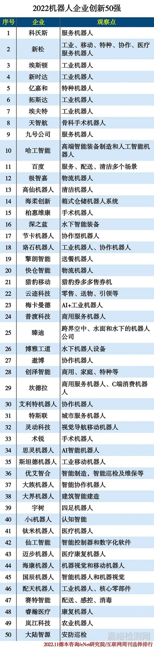 附:2022機(jī)器人企業(yè)創(chuàng)新50強(qiáng)完整榜單: