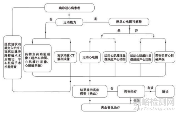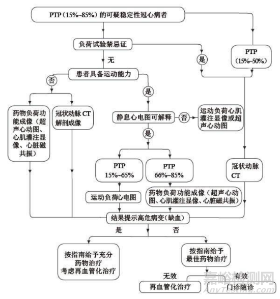 圖2:確診冠心病的患者評價(jià)心肌缺血狀態(tài)的無創(chuàng)影像檢查路徑