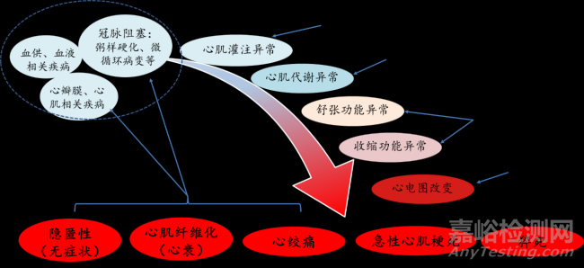 圖3:心肌缺血疾病典型發(fā)展過程中各種影像技術(shù)的應(yīng)用