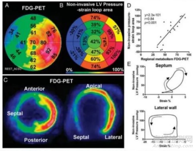 圖10:表明超聲影像壓力-應(yīng)變環(huán)與PET心肌代謝顯像相關(guān)性的病例圖像示例。圖片引自參考文獻(xiàn)[3]