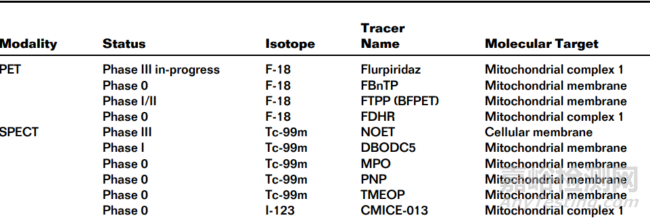 表3. 正在研發(fā)和轉(zhuǎn)化中的心肌PET與SPECT心肌灌注顯像新藥(引自參考文獻(xiàn)[13])