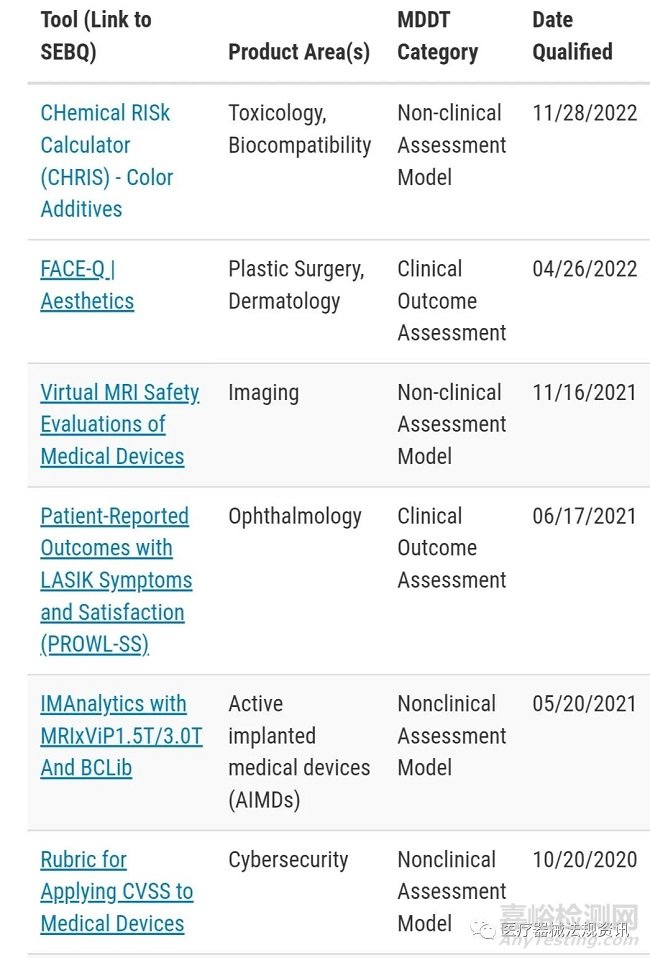 目前批準(zhǔn)的合格的醫(yī)療器械開(kāi)發(fā)工具(MDDTs)有哪些?