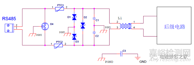 RS485用于設(shè)備與計(jì)算機(jī)或其他設(shè)備之間的通信,在產(chǎn)品應(yīng)用中,其多線和電源.功率信號(hào)等混合在一起,存在EMC隱患。本方案從EMC測(cè)試原則上,設(shè)計(jì)了相關(guān)的抑制干擾和抗敏感性,從設(shè)計(jì)層面解決電磁兼容測(cè)試問題。