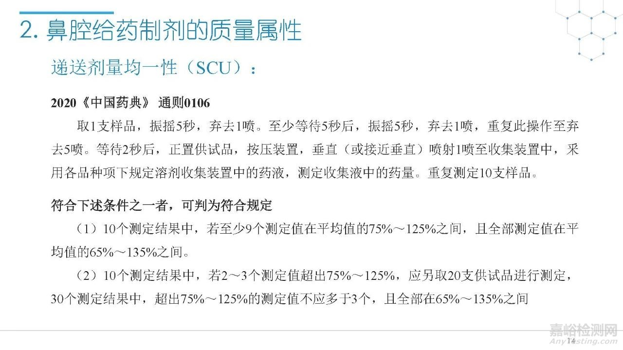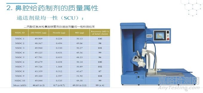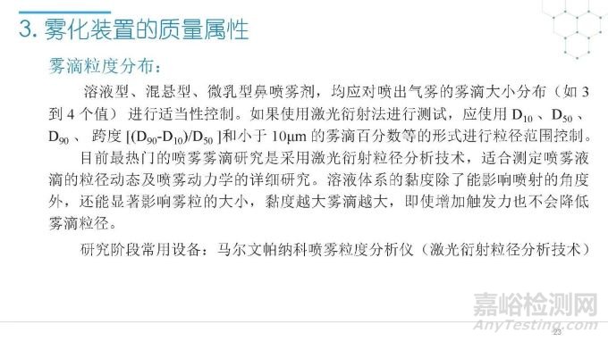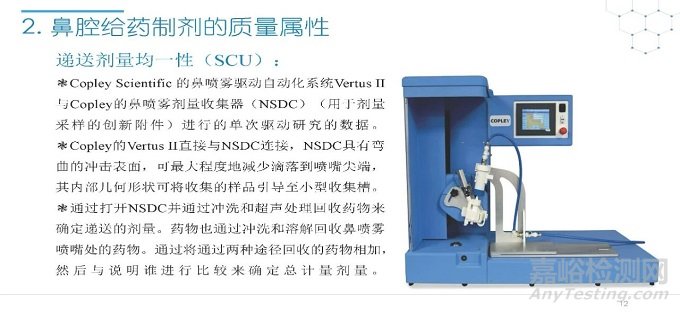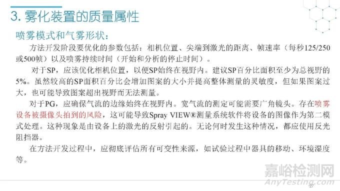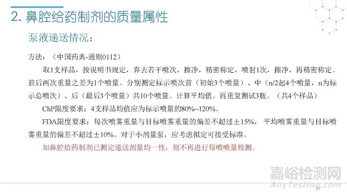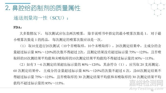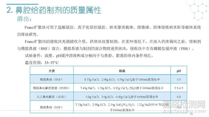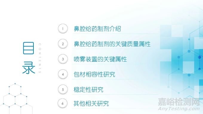 隨著國(guó)內(nèi)改良型制劑的發(fā)展,越來越多的醫(yī)藥公司把部分研發(fā)重心轉(zhuǎn)向開發(fā)鼻腔給藥制劑。但關(guān)于鼻腔給藥制劑與傳統(tǒng)的口服固體制劑、注射劑的質(zhì)量研究又存在些許差異,關(guān)于這方面的剖析相對(duì)較少。本節(jié)就鼻噴制劑的分析檢測(cè)和現(xiàn)有的鼻腔噴霧產(chǎn)品的監(jiān)管要求進(jìn)行了回顧與討論。特別強(qiáng)調(diào)了一些關(guān)于鼻腔噴霧產(chǎn)品的體外表征和體外群體生物等效性方面的研究,主要包括噴霧模式(SP:Spray Pattern)和氣霧形狀(PG:Plume Geometry,噴霧幾何形狀;又稱噴霧角度Spray Angle)。此外,還對(duì)鼻腔給藥制劑的給藥裝置、特殊檢項(xiàng)和控制標(biāo)準(zhǔn)、表征設(shè)備和原理(表征方法開發(fā)、優(yōu)化的注意事項(xiàng):如相機(jī)位置、尖端到激光的距離、相機(jī)幀速率以及噴霧持續(xù)時(shí)間)、鼻噴制劑的溶出(包括裝置、溶出介質(zhì)及介質(zhì)配制)進(jìn)行了簡(jiǎn)要介紹。并以實(shí)際案例介紹了仿制藥開發(fā)過程中的噴霧模式(SP)和氣霧形狀(PG)的對(duì)比研究,這也是鼻噴制劑體外生物等效性的研究核心。