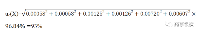 三是溫度,液體膨脹系數(shù),不過對照品溶液和樣品溶液是在同一溫度下制備,故膨脹系數(shù)引起的測量不確定度是可以忽略的。則對照品溶液稀釋倍數(shù)VR的標準偏差: