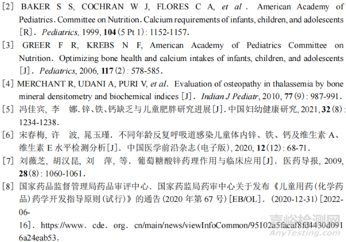 兒童期是身體生長(zhǎng)發(fā)育的關(guān)鍵時(shí)期,需要各種營(yíng)養(yǎng)均衡攝入。兒童的營(yíng)養(yǎng)主要來(lái)自食物補(bǔ)充,但由于挑食和不知節(jié)制、家長(zhǎng)忽視引導(dǎo)、地區(qū)飲食習(xí)慣等因素,可能造成兒童體內(nèi)微量元素偏低,如缺鋅、缺鈣等。我國(guó)大部分兒童都存在膳食鈣攝入不足的情況。鈣是構(gòu)成骨骼和牙齒的主要礦物元素,充足的鈣攝入是骨骼正常生長(zhǎng)和健康發(fā)育的基本保證,也是骨量積累和獲得最大峰值骨量的物質(zhì)基礎(chǔ)。兒童期和青春期是骨量增加的關(guān)鍵時(shí)期,此時(shí)骨骼迅速增長(zhǎng)、骨密度增加、骨量積累。鈣不僅僅關(guān)系到孩子的身高,與身體的健康發(fā)育也密不可分,充足的鈣攝入形成的峰值骨量能夠預(yù)防老年期骨質(zhì)疏松[1]。兒童期鈣攝入不足可能會(huì)增加骨折和佝僂病的風(fēng)險(xiǎn),并且在以后的生活中難以達(dá)到最大骨量峰值[2—3]。研究表明,口服維生素 D 和鈣補(bǔ)充劑能增加地中海貧血兒童的骨礦物質(zhì)含量[4]。補(bǔ)鈣對(duì)于治療兒童肥胖、不同年齡段呼吸道反復(fù)感染都有一定的效果,這可能與微量元素鋅、鐵、鈣會(huì)影響兒童免疫功能的重建有關(guān)[5—6]。從預(yù)防和治療兩方面考慮,保證兒童期的體內(nèi)鈣含量充足至關(guān)重要。