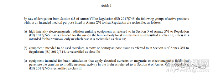 1 用于人體皮膚治療的高強度電磁輻射發(fā)射設(shè)備被重新歸類為IIb類,除非僅用于脫毛,在這種情況下,該設(shè)備被重新歸類為IIa類;