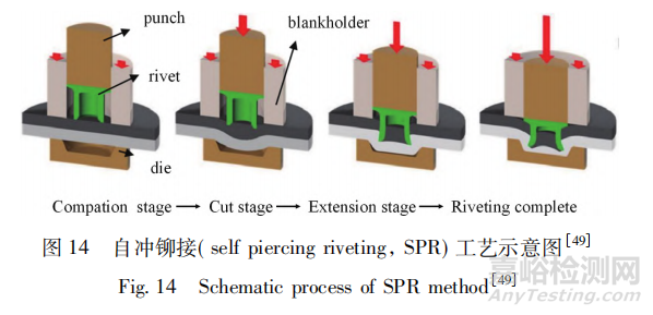 鋁合金汽車板與鋼板相比,電阻點(diǎn)焊性能較差,因此自沖鉚( self piercing riveting,SPR) 、拉鉚、clinch-鉚接、熱熔自攻鉚接等機(jī)械連接成為重要的連接方法。其中,自沖鉚是目前應(yīng)用最廣泛的連接工藝,不僅適用于鋁合金板材之間的連接,而且可實(shí)現(xiàn)鋁合金板材與鋼板等其他異種材料的可靠連接。