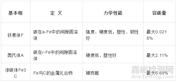 鐵碳合金在平衡狀態(tài)下的五個基體組織中,鐵素體、奧氏體和滲碳體是鐵碳合金的三個基本相,而珠光體和萊氏體則為基本相組成的機械混合物。