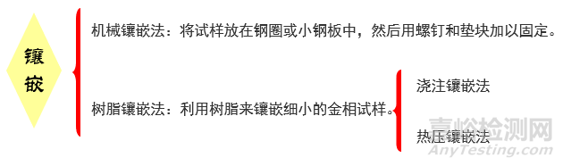 1.在金相試樣制備過程中,有許多試樣直接磨拋有困難,需要進(jìn)行鑲嵌。通常進(jìn)行鑲嵌的試樣有:形狀不規(guī)則的試樣、線材及板材,細(xì)小工件;表面處理及滲層、鍍層等。