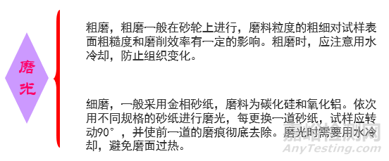 2.金相試樣經(jīng)切割或鑲嵌后,需進(jìn)行研磨才能得到光亮的磨面。研磨的過程包括粗磨和細(xì)磨。