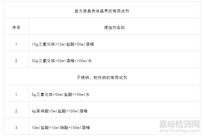 常用的侵蝕劑