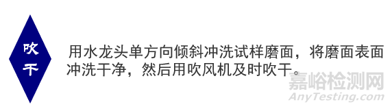 2)水砂紙要加水,試樣呈45°角進(jìn)行沖洗,目的:將試樣上的雜物沖掉;