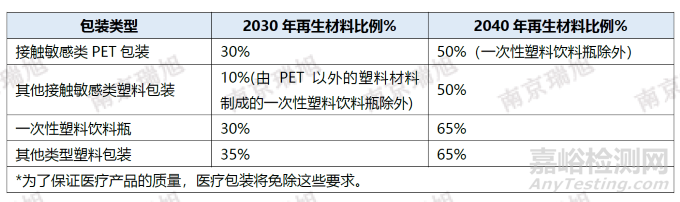 PPWR提案針對特定包裝類別,規(guī)定了強制性再生材料含量比例,相關(guān)要求自2030年1月1日起實施。