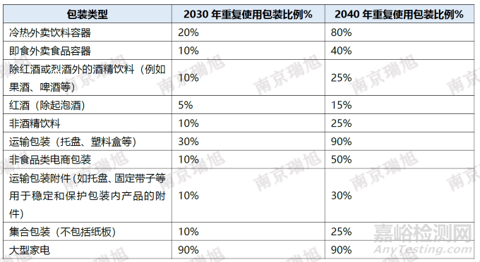 PPWR提案擬定了運輸包裝、電商包裝等的強制性重復(fù)使用包裝比例,自2030年1月1日起實施。