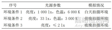 為考察不同光照條件下攝像機(jī)的灰階分辨能力,使用三種實(shí)驗(yàn)室模擬環(huán)境,分別模擬白天,傍晚和夜晚拍攝環(huán)境。夜晚環(huán)境測試時,攝像產(chǎn)品會進(jìn)行自動補(bǔ)光。如攝像頭未自帶燈光/紅外照明,則無需進(jìn)行項(xiàng)目3測試。具體見表1。