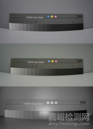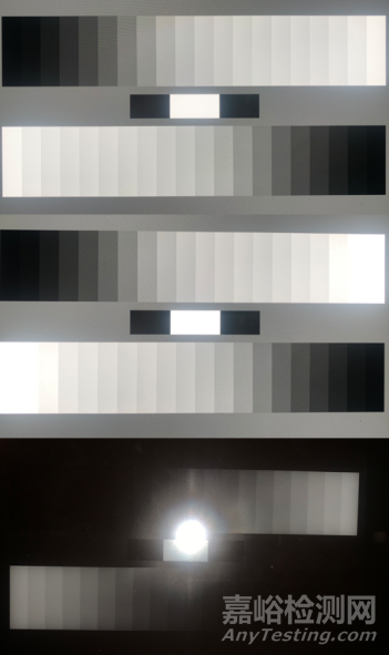 圖1 環(huán)境測試前不同光照條件下透射式標(biāo)板灰階測試實(shí)拍圖