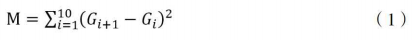 本次共測試11個位置點(diǎn)的G值,分別為Gi,其中i=1,2…11??疾煜噜弮蓚€位置點(diǎn)G值的差值,并求其差值平方的和,計為M,該M值可有效評估相鄰位置點(diǎn)的差異情況。M值越大,說明圖像的灰階分辨能力越好。