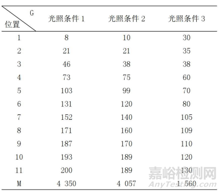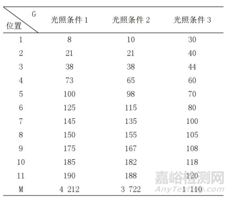 表1 環(huán)境測試前不同光照條件下的G值