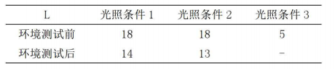 表4 環(huán)境測試前后不同光照條件下的灰階分辨率L