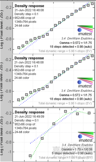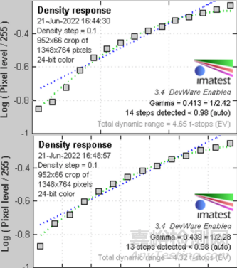 本章節(jié)將對測試結(jié)果進(jìn)行分析。環(huán)境測試前后,按表1要求開展三種環(huán)境模式下攝像機(jī)樣品拍攝視頻的獲取。隨機(jī)抓取視頻的單幀圖像,進(jìn)行灰階測試的分析?;译A測試共有兩種測試方案:透射式標(biāo)板法和反射式標(biāo)板法。下面對兩種測試結(jié)果進(jìn)行分析。