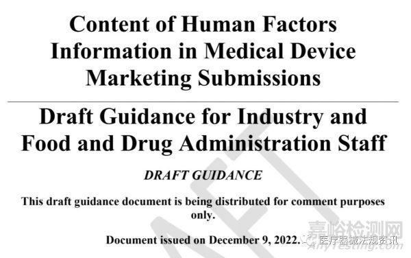 2022.12.9,F(xiàn)DA發(fā)布“醫(yī)療器械上市前遞交材料中人為因素信息的內(nèi)容”的指南草案,以修訂2016年發(fā)布的“人為因素審查最高優(yōu)先級器械清單”指南草案。