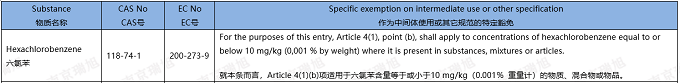 2022年11月23日,歐盟官方公報(bào)發(fā)布授權(quán)法案 (EU) 2022/2291,對(duì)POP法規(guī)附件I A部分進(jìn)行修訂,新增六氯苯的意外痕量污染物 (UTC) 限值。該授權(quán)法自法規(guī)發(fā)布后第20天開始生效,并直接適用于所有成員國。