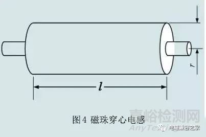 穿心電感的電感量一般比較小,大概在幾微亨到幾十微亨之間。電感量的大小與穿心電感中導(dǎo)線的大小和長度以及磁珠的截面有關(guān),但與磁珠電感量最相關(guān)的是磁珠的相對導(dǎo)磁率。圖3.圖4是指導(dǎo)線和穿心電感的原理圖。在計算穿心電感時,首先計算圓截面直導(dǎo)線的電感,然后乘以磁珠的相對導(dǎo)磁率計算穿心電感的電感。