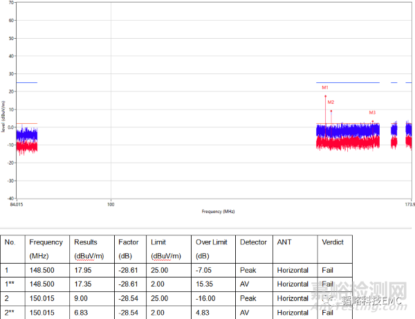 可以看到數(shù)據(jù)上148MHz和150MHz時(shí)鐘超標(biāo)非常明顯,而M3點(diǎn)圖上沒(méi)有顯示,為162MHz(后面經(jīng)過(guò)驗(yàn)證為攝像頭時(shí)鐘引起,需要在攝像頭端整改,本文針對(duì)為主板整改過(guò)程)。