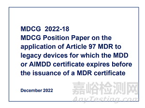 對(duì)于很多持有MDD或AIMD下CE證書(shū)的醫(yī)療器械的制造商來(lái)說(shuō),明明生產(chǎn)的是具有成熟技術(shù)的醫(yī)療器械,未發(fā)現(xiàn)不可接受的安全問(wèn)題,現(xiàn)在卻受公告機(jī)構(gòu)MDR認(rèn)證能力有限的影響,面臨著在證書(shū)到期之時(shí)仍可能未能獲取MDR認(rèn)證證書(shū)的情況,歐洲市場(chǎng)的銷(xiāo)售可能中斷。面對(duì)這個(gè)令很多制造商焦慮的問(wèn)題,MDCG 2022-18或許會(huì)給大家?guī)?lái)一線生機(jī)。
