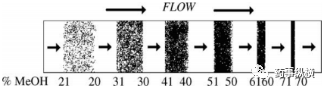 圖1組分帶通過提高洗脫強(qiáng)度的溶劑梯度被壓縮的示意圖