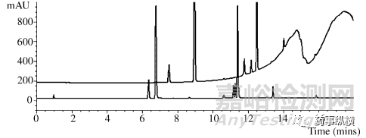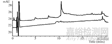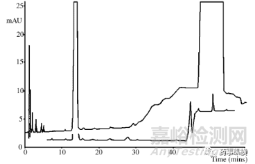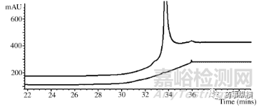 圖10梯度色譜顯示梯度高效液相色譜級(jí)乙腈中鄰苯二甲酸二辛酯的污染。