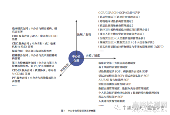 申辦者作為臨床研究數(shù)據(jù)質(zhì)量和可靠性的最終責(zé)任人[1],需要在遵循監(jiān)管要求的基礎(chǔ)上,充分協(xié)調(diào)并管理外部協(xié)作資源,不斷建立并完善內(nèi)控制度。筆者建議可從三個(gè)維度對(duì)臨床研究進(jìn)行合規(guī)管理,以完善合規(guī)管理體系,如圖1 所示。