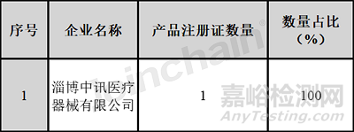 可生產(chǎn)家用呼吸機(jī)(生命支持)的生產(chǎn)企業(yè)中,淄博中訊醫(yī)療器械有限公司的產(chǎn)品數(shù)量排名第一,有1件。