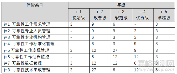 依據(jù)企業(yè)實(shí)施可靠性系統(tǒng)工程的實(shí)際情況與評價要素描述的匹配程度進(jìn)行打分,分值設(shè)置為0~3分。