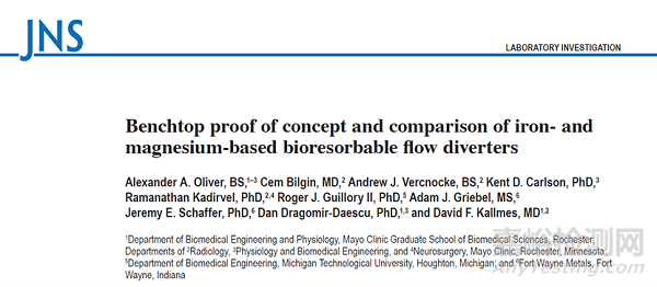 一到年底就會發(fā)現(xiàn),看文章的速度根本趕不上大神們發(fā)文章的速度,昨天又看到JNS上一篇Mayo Clinic的教授們,與Michigan Technological University,以及Fort Wayne Metals的老師們,共同發(fā)表的“Benchtop proof of concept and comparison of iron- and magnesium-based bioresorbable flow diverters”一文,趁熱打鐵一起來講一下吧。