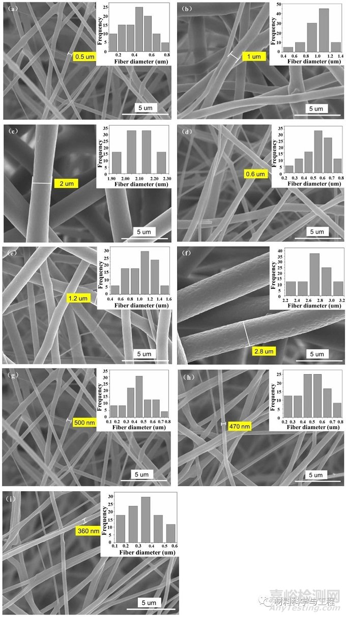圖 1。(a–i) SEM 顯微照片和直徑分布。