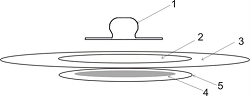 1)電極扣,2)膠帶,3)基襯材料,4)導(dǎo)電介質(zhì),5)防粘膜。