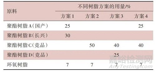 表3不同樹(shù)脂方案的實(shí)驗(yàn)結(jié)果