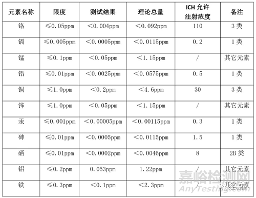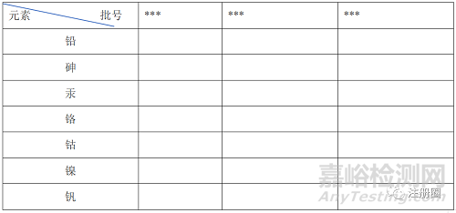 飲用水中元素雜質(zhì)測(cè)試信息表