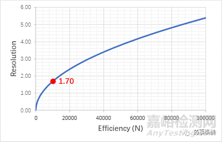 圖2:分離度Rs與塔板數(shù)N之間的關(guān)系