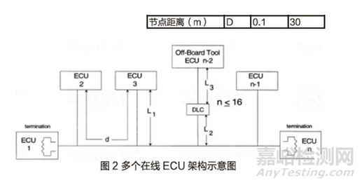 終端電阻可臨近放置于或放置于距離最長(zhǎng)的而兩個(gè)在線ECU內(nèi)。非終端ECU可選連接。根據(jù)標(biāo)準(zhǔn)要求,給CA N 總線上提供的終端電阻是60Ω,故整車CAN總線上最遠(yuǎn)的兩個(gè)節(jié)點(diǎn)必須各有一個(gè)120Ω終端電阻(要求在CAN_H和CAN_L之間)。
